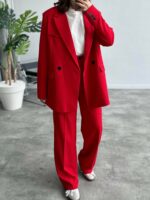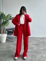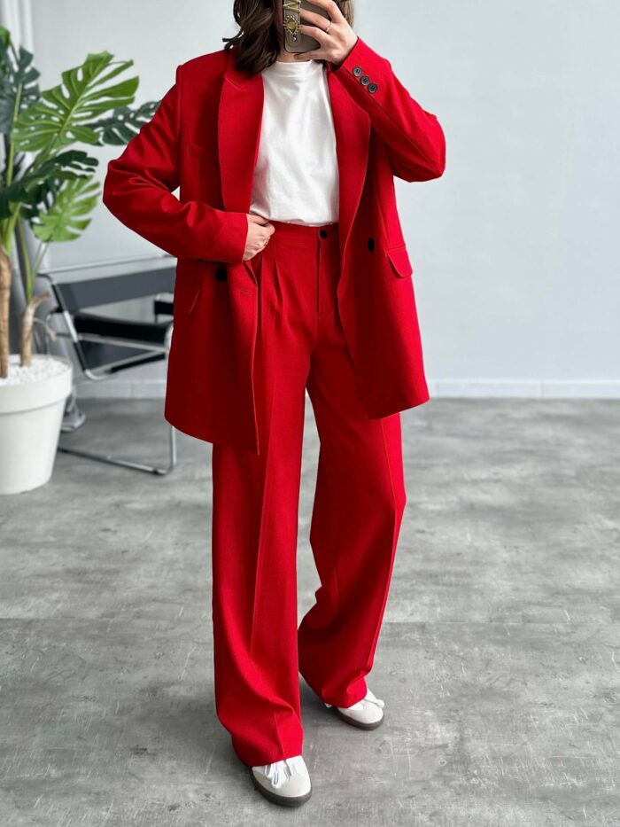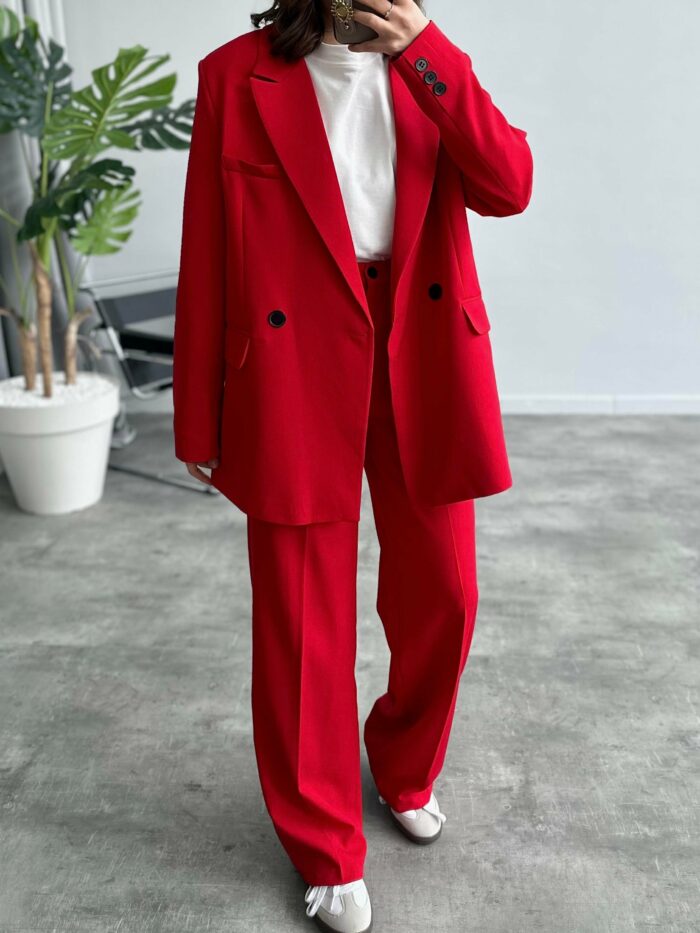 Port Kırmızı Koton Kumaş Blazer Takım